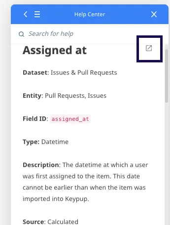 6. You'll then get all the information about the field, such as its dataset, field type, description, and source. If you want to open and enlarge the article, you can click on the little icon located at the top right of all articles.