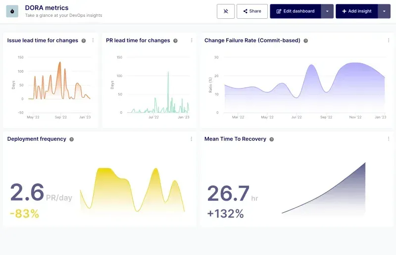 By forecasting team progress and product roadmap, tech leaders can better allocate resources and make informed decisions about the direction of their projects. This can help them stay ahead of the competition and deliver high-quality products to their customers on time. Start monitoring DORA metrics today and improve your overall performance.