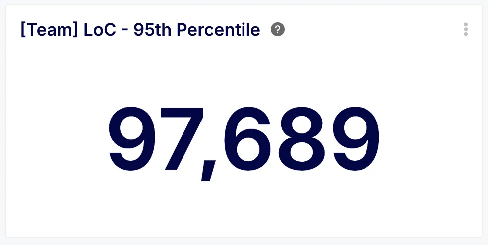 Description: Shows the 95th percentile for lines of code changed per PR across the team (excluding bots like dependabot) over the selected period.