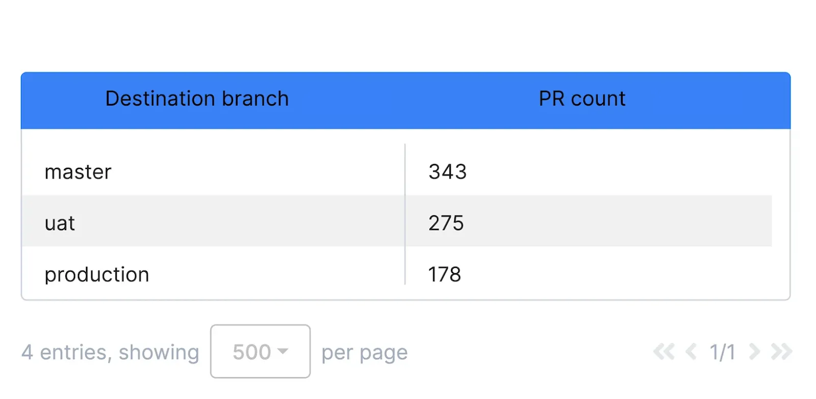 Simplify the management of destination branches to promote consistency and enhance deployment strategies. By centralizing branch management and providing strategic insights into branch purposes, this report facilitates a more organized and efficient development workflow.